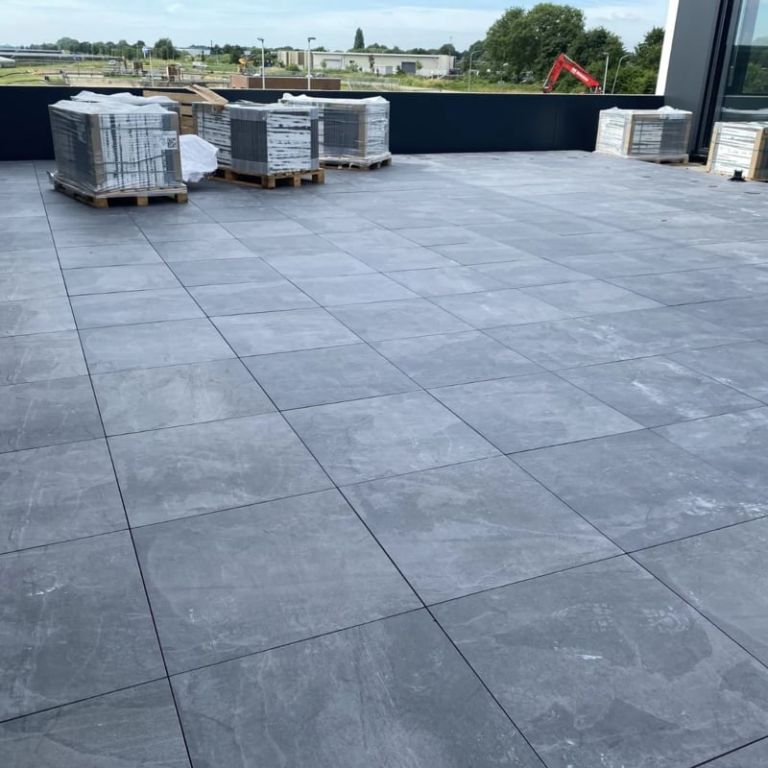 De Ceramaxx 60×60 tegel Durban Slate BlackBerry is gemakkelijk te verwerken. Dankzij de dikte kunnen deze tegels in een normaal geëgaliseerd zandbed worden verwerkt. Je hebt dus geen speciale ondergrond nodig. Keramische tegels worden altijd met voeg gelegd. Dat wil zeggen met gelijke afstand van elkaar. Je kan hiervoor voegkruizen gebruiken, zodat je zeker weet dat de afstand overal gelijk is. Voeg af met een flexibel en waterdoorlatend voegmiddel voor een strak resultaat. Maak het geheel af door af te sluiten met opsluitbanden. Hiermee voorkom je verzakken en verschuiven van de tegels.