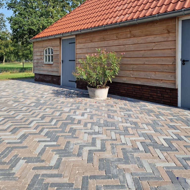 Deze steen is gemakkelijk te verwerken. Voor licht belastbare bestrating, zoals tuinpad en terras, heb je geen speciale ondergrond. Hiervoor is een geëgaliseerd zandbed voldoende. Ga je de oprit bestraten? Voeg dan een laag grof grind of gebroken puin aan de ondergrond toe, zodat deze extra verstevigd is. De stenen zijn voorzien van afstandhouders. Hierdoor verwerk je de stenen gemakkelijk met de juiste afstand van elkaar. Door af te voegen zorg je voor een strakke en stevige afwerking, waarbij onkruidgroei wordt tegengegaan. Sluit het geheel op met opsluitbanden om verschuiven en verzakken te voorkomen.