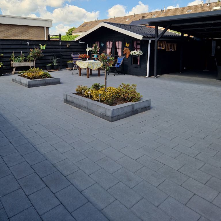 Deze steen is gemakkelijk te verwerken. Hier heb je namelijk geen speciale ondergrond voor nodig. Een geëgaliseerd zandbed is dan ook voldoende. Let op dat je voor de oprit extra versteviging nodig hebt. Voeg daarom een laag grof grind of gebroken puin aan de ondergrond toe. Dankzij de geïntegreerde afstandhouders leg je de stenen direct met de juist voeg. Dat wil zeggen met gelijke afstand van elkaar. Door af te voegen zorg je voor een strakke en stevige afwerking, waarbij onkruidgroei wordt tegengegaan. Sluit het geheel op met opsluitbanden om verschuiven en verzakken te voorkomen.