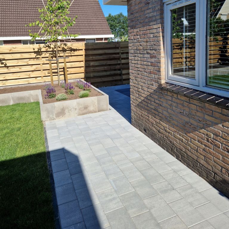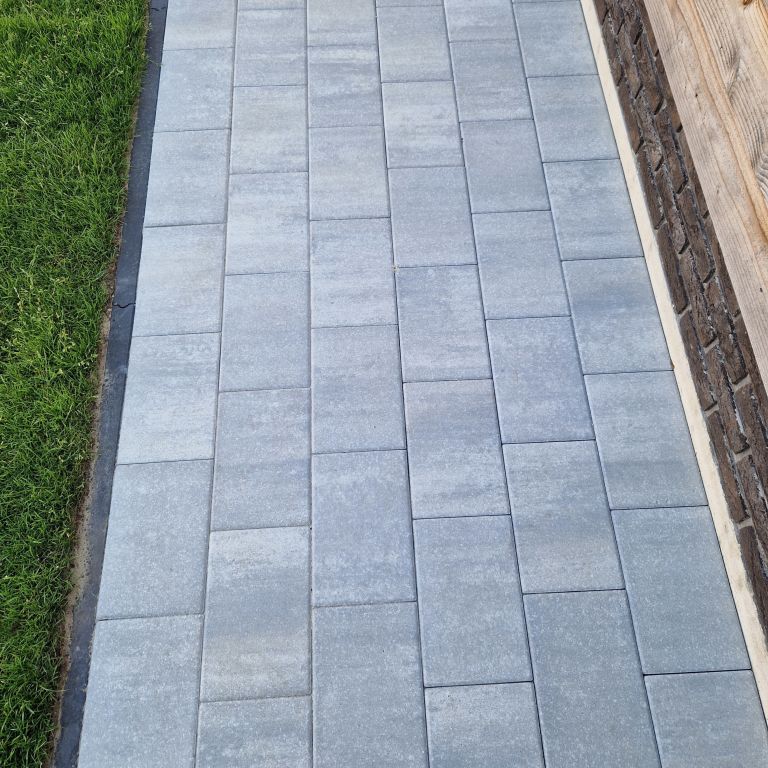 Deze steen is gemakkelijk te verwerken. Hier heb je namelijk geen speciale ondergrond voor nodig. Een geëgaliseerd zandbed is dan ook voldoende. Let op dat je voor de oprit extra versteviging nodig hebt. Voeg daarom een laag grof grind of gebroken puin aan de ondergrond toe. Dankzij de geïntegreerde afstandhouders leg je de stenen direct met de juist voeg. Dat wil zeggen met gelijke afstand van elkaar. Door af te voegen zorg je voor een strakke en stevige afwerking, waarbij onkruidgroei wordt tegengegaan. Sluit het geheel op met opsluitbanden om verschuiven en verzakken te voorkomen.