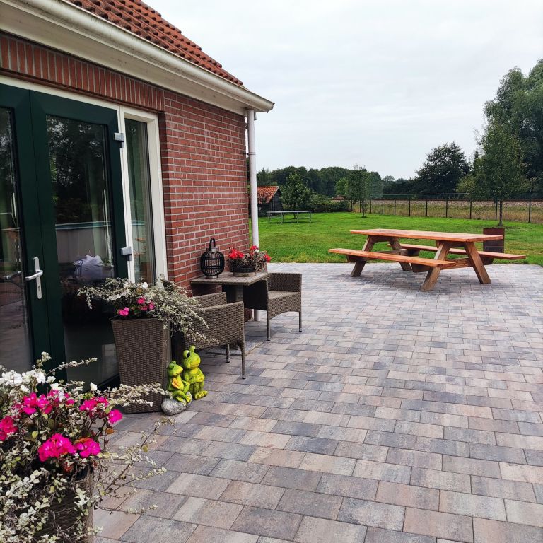 Deze steen is gemakkelijk te verwerken. Hier heb je namelijk geen speciale ondergrond voor nodig. Een geëgaliseerd zandbed is dan ook voldoende. Let op dat je voor de oprit extra versteviging nodig hebt. Voeg daarom een laag grof grind of gebroken puin aan de ondergrond toe. Dankzij de geïntegreerde afstandhouders leg je de stenen direct met de juist voeg. Dat wil zeggen met gelijke afstand van elkaar. Door af te voegen zorg je voor een strakke en stevige afwerking, waarbij onkruidgroei wordt tegengegaan. Sluit het geheel op met opsluitbanden om verschuiven en verzakken te voorkomen.