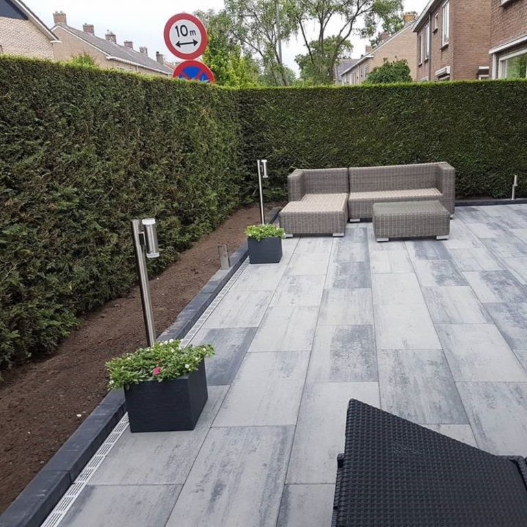 Deze tegel is gemakkelijk te verwerken. Hier heb je namelijk geen speciale ondergrond voor nodig. Een geëgaliseerd zandbed is dan ook voldoende. Dankzij de geïntegreerde afstandhouders leg je de tegels direct met de juist voeg. Dat wil zeggen met gelijke afstand van elkaar. Door af te voegen zorg je voor een strakke en stevige afwerking, waarbij onkruidgroei wordt tegengegaan. Sluit het geheel op met opsluitbanden om verschuiven en verzakken te voorkomen. Zo weet je zeker dat de tegels nog jarenlang goed blijven liggen.