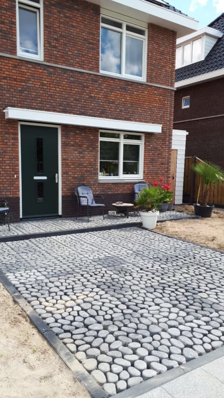 Onze keigrasstenen zijn ook uitermate geschikt voor je achtertuin of je oprit. Een unieke eigenschap van de steen is dat hij ‘waterpasserend’ is. Dat houdt in dat hemelwater makkelijk in de ondergrond zakt. De tussenruimtes vul je op met zand, split of gras.