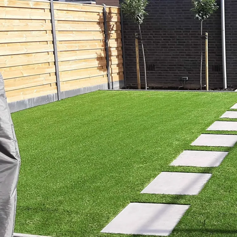 Dankzij de hoge vezeldichtheid en het gewicht van 2.428 gram per m² voelt de mat niet alleen stevig aan, maar blijft deze ook mooi liggen, zelfs bij intensief gebruik. BM Zandbelt kunstgras is daarmee ideaal voor wie een ruime tuin onderhoudsarm én stijlvol wil inrichten.