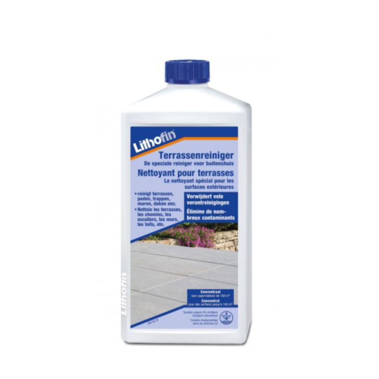 Lithofin Terrasreiniger is geschikt voor allerlei soorten bestrating. Denk hierbij aan betontegels, betonnen bestrating en klinkers en gebakken steen. Of je nu een tuinpad hebt dat snel vies wordt, een terras onder bomen met aanslag of een oprit waar vuil zich ophoopt: met dit product maak je het oppervlak eenvoudig schoon. Blijkt je bestrating ook vet- of olievlekken te hebben? Dan kan je deze reiniging ook combineren met Lithofin Losefix. Deze terrasreiniger is ook verkrijgbaar in 1 liter variant.