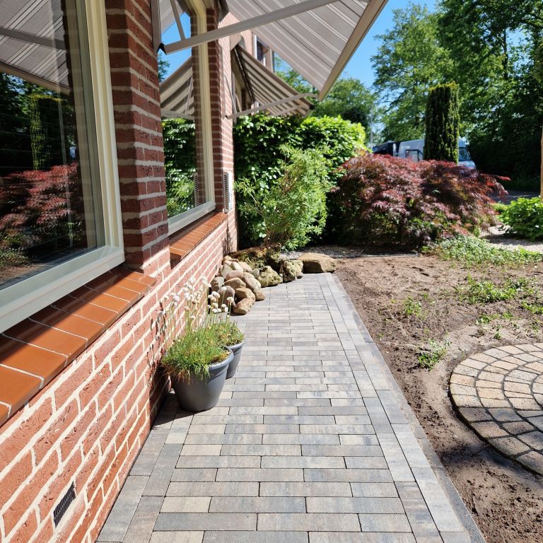 Deze steen is gemakkelijk te verwerken. Voor licht belastbare bestrating, zoals terras en tuinpad, heb je geen speciale ondergrond nodig. Dan is een geëgaliseerd zandbed voldoende. Voor de oprit heb je extra versteviging nodig. Voeg daarom een laag grof grind of gebroken puin aan de ondergrond toe. Dankzij de afstandhouders verwerk je de stenen gemakkelijk met de juiste afstand van elkaar. Door af te voegen zorg je voor een strak en stevig eindresultaat. Sluit je bestrating op met opsluitbanden om verschuiven en verzakken te voorkomen.