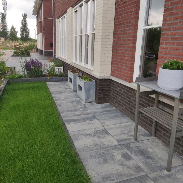 Deze tegel is gemakkelijk te verwerken. Hier heb je namelijk geen speciale ondergrond voor nodig. Een geëgaliseerd zandbed is dan ook voldoende. Dankzij de geïntegreerde afstandhouders leg je de stenen direct met de juist voeg. Dat wil zeggen met gelijke afstand van elkaar. Door af te voegen zorg je voor een strakke en stevige afwerking, waarbij onkruidgroei wordt tegengegaan. Sluit het geheel op met opsluitbanden om verschuiven en verzakken te voorkomen. Zo geniet je nog jarenlang van een strak terras.