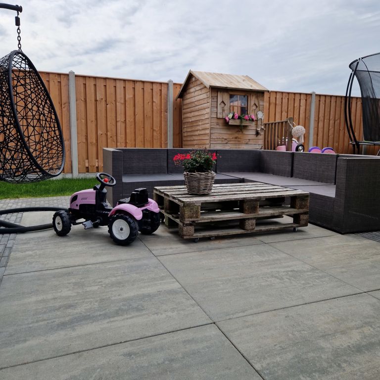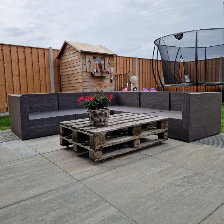 Deze tegel is gemakkelijk te verwerken. Hier heb je namelijk geen speciale ondergrond voor nodig. Een geëgaliseerd zandbed is dan ook voldoende. Dankzij de geïntegreerde afstandhouders leg je de stenen direct met de juist voeg. Dat wil zeggen met gelijke afstand van elkaar. Door af te voegen zorg je voor een strakke en stevige afwerking, waarbij onkruidgroei wordt tegengegaan. Sluit het geheel op met opsluitbanden om verschuiven en verzakken te voorkomen. Zo geniet je jarenlang van een mooi terras.