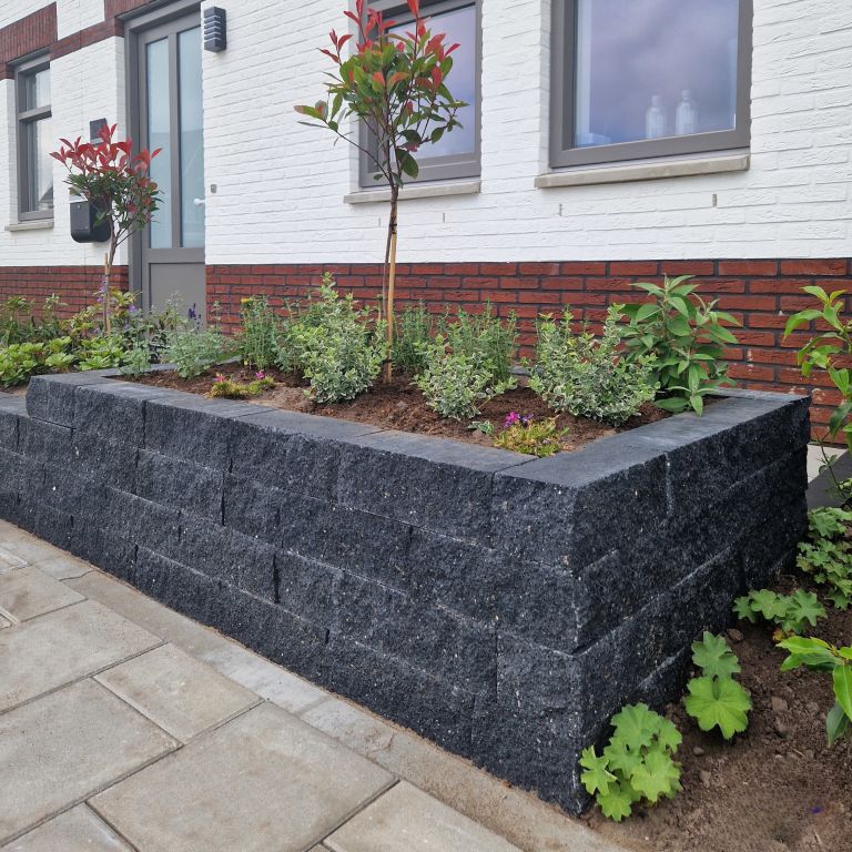 Gebruik de Splitrock strak stapelblokken om je tuin helemaal af te maken. Denk bijvoorbeeld aan tuinmuren, borders, plantenbakken en nog veel meer. Met een gespleten zichtzijde die de natuurlijke materialen mooi naar voren laat komen. Dit geeft elke constructie een bijzondere uitstraling. Strak afgewerkt met vlakke zijdes. Verkrijgbaar in rechte en hoekstukken. Kies uit verschillende kleuren, zoals effen en genuanceerde kleurstellingen.