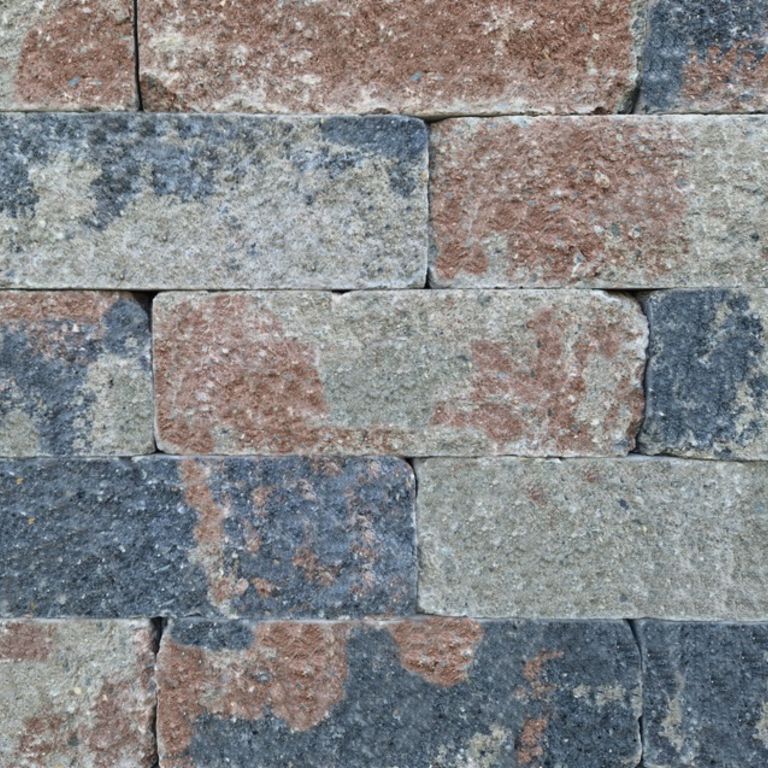 De Splitrock trommel 32x13x11 cm 2.0 Tricolore is een getrommeld stapelblok. Dat wil zeggen dat de blokken een extra behandeling hebben gehad. Hierbij zijn de randen en hoeken van de blokken ongelijk gemaakt. Dit geeft de muurblokken een verouderde uitstraling, terwijl deze toch als nieuw zijn. Daarmee zijn de blokken een perfecte toevoeging aan landelijke tuinstijlen met veel groen en organische vormen. Maar ook in een moderne tuin met strakke lijnen komen de blokken goed tot hun recht.