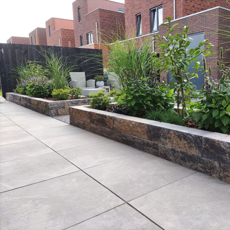 Maak je tuin helemaal af met de Splitrock XL 15x15x60 cm 2.0 Grigio Camello. Geschikt voor het bouwen van verschillende constructies. Denk bijvoorbeeld aan afscheidingen in de vorm van hogere tuinmuren en lage borders. Of denk aan eigen ontworpen plantenbakken, banken en stoelen. Daarnaast kunnen deze blokken ook worden gebruikt om hoogteverschillen op te vangen. Of je nou meer groen in de tuin wilt, een hoogteverschil wilt maken en opvangen, of een comfortabele zithoek wilt maken. Je doet het allemaal met deze strakke muurblokken. Als extra hebben deze stapelblokken een zichtzijde met gesplitste afwerking. Hierdoor komen de natuurlijke uitstraling en kleuren van het materiaal mooi naar voren.