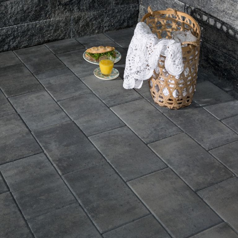 Deze steen is gemakkelijk te verwerken. Hier heb je namelijk geen speciale ondergrond voor nodig. Een geëgaliseerd zandbed is dan ook voldoende. De stenen hebben geen afstandhouders. Je verwerkt de stenen dus dicht tegen elkaar aan. Door af te voegen zorg je voor een strakke en stevige afwerking, waarbij onkruidgroei wordt tegengegaan. Sluit het geheel op met opsluitbanden om verschuiven en verzakken te voorkomen. Zo geniet je nog jarenlang van een strak terras.