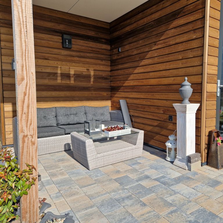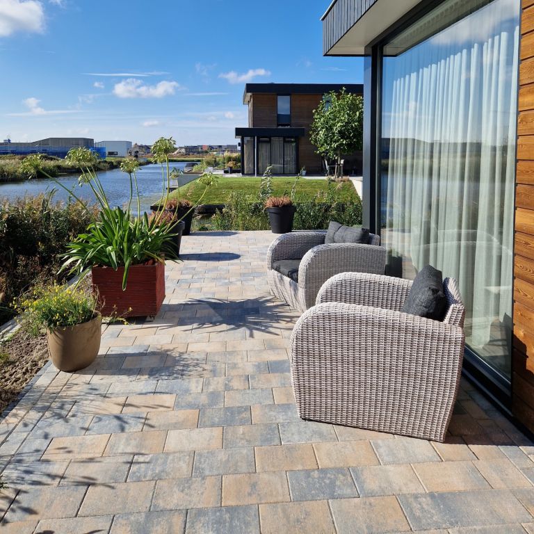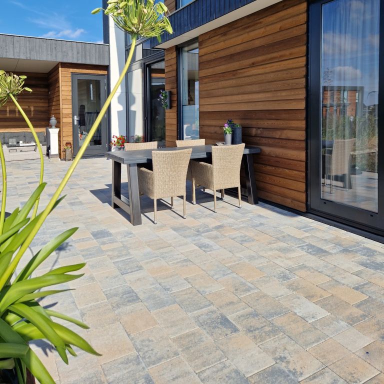 Deze steen is gemakkelijk te verwerken. Hier heb je namelijk geen speciale ondergrond voor nodig. Een geëgaliseerd zandbed is dan ook voldoende. Ga je de oprit bestraten? Zorg dan voor een extra stevige ondergrond. Dit doe je door een laag grof grind of gebroken puin toe te voegen. De stenen hebben geen afstandhouders. Je verwerkt de stenen dus dicht tegen elkaar aan. Door af te voegen zorg je voor een strakke en stevige afwerking, waarbij onkruidgroei wordt tegengegaan. Sluit het geheel op met opsluitbanden om verschuiven en verzakken te voorkomen. Zo geniet je nog jarenlang van een strak terras.