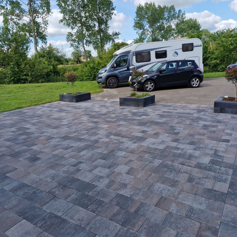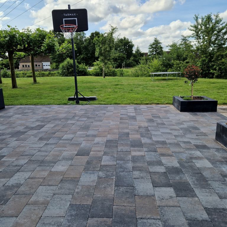 Deze steen is gemakkelijk te verwerken. Hier heb je namelijk geen speciale ondergrond voor nodig. Een geëgaliseerd zandbed is dan ook voldoende. Ga je de oprit bestraten? Zorg dan voor een extra stevige ondergrond. Dit doe je door een laag grof grind of gebroken puin toe te voegen. De stenen hebben geen afstandhouders. Je verwerkt de stenen dus dicht tegen elkaar aan. Door af te voegen zorg je voor een strakke en stevige afwerking, waarbij onkruidgroei wordt tegengegaan. Sluit het geheel op met opsluitbanden om verschuiven en verzakken te voorkomen. Zo geniet je nog jarenlang van een strak terras.