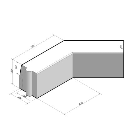 Trottoirband 18/20x25 Hoekstuk 135 inwendig